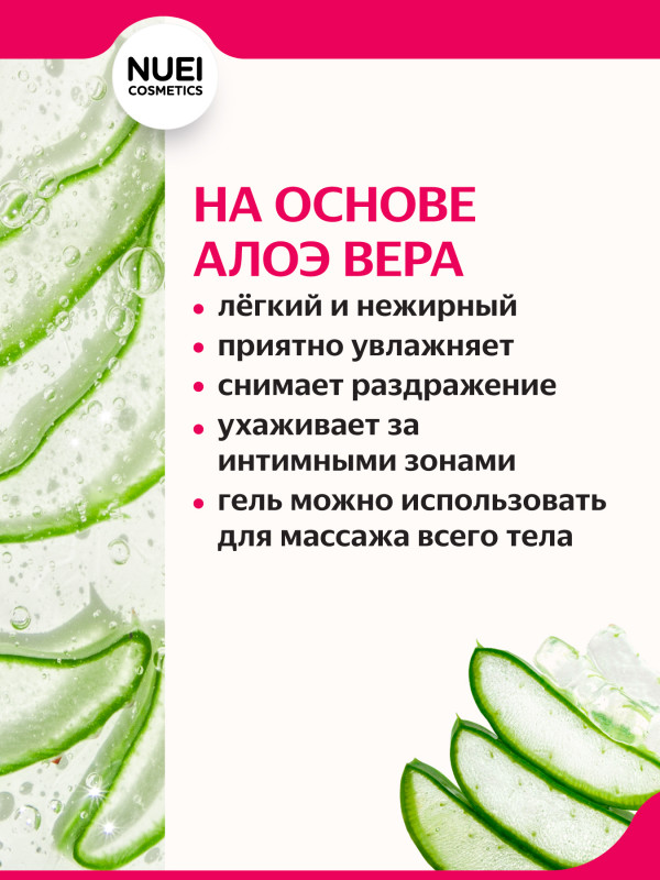 Гель содержит в своем составе алоэ вера, которое оказывает смягчающее и успокаивающее действие на интимные зоны